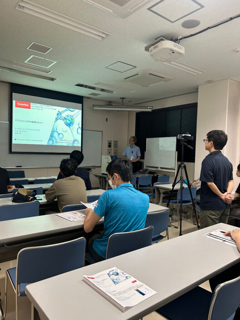 本セミナーは、これから遺伝子発現解析を始める方や、試薬調製・機器操作を基礎から学びたい方を対象としており、リアルタイムPCRの原理からデータ解析までを体系的に理解できる内容となっていました。